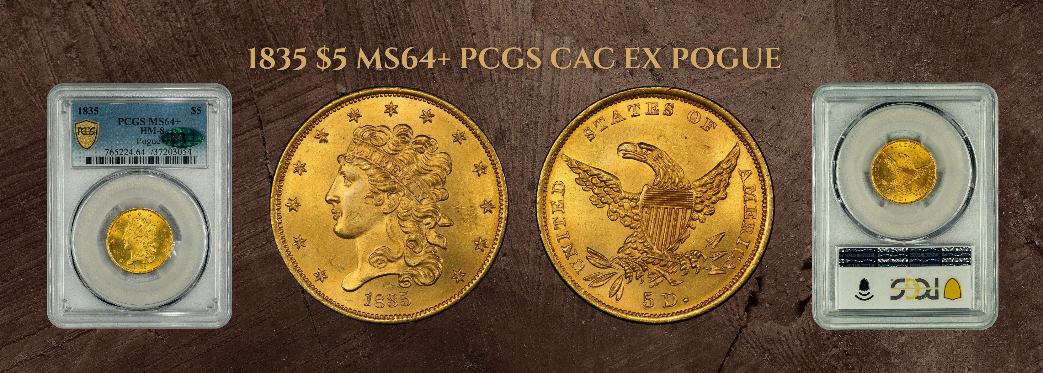 1835 $5 MS64+ PCGS CAC EX POGUE