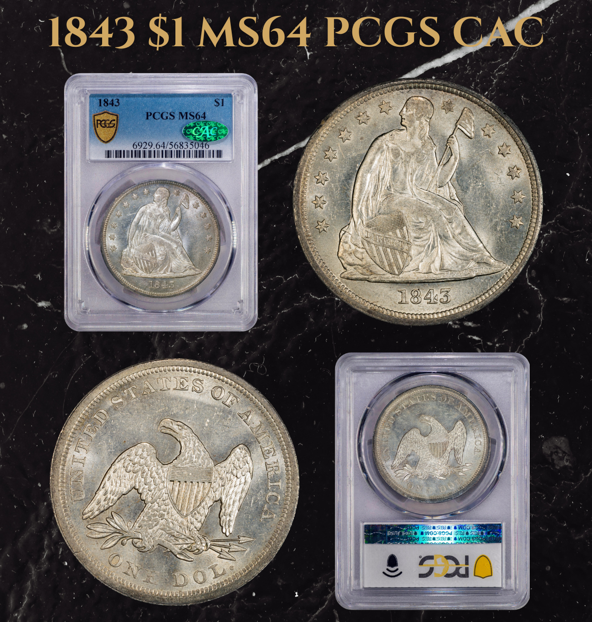 1843 $1 MS64 PCGS CAC