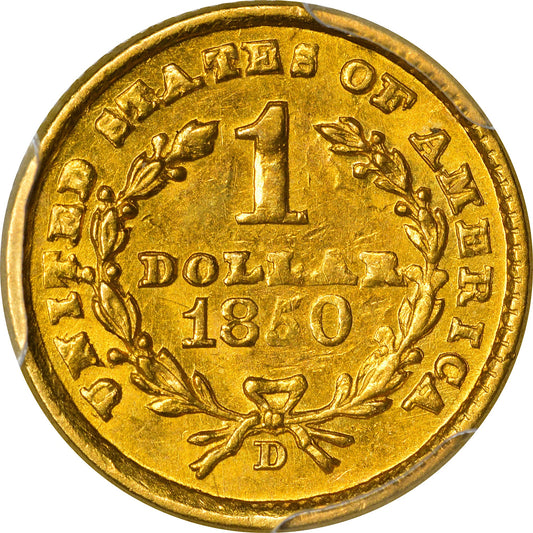 1849 G$1 OPEN WREATH VF35 PCGS CAC