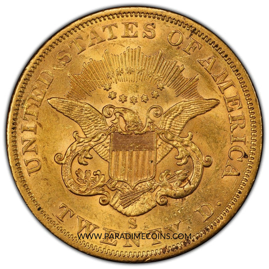 1862-S $20 MS61 PCGS CAC