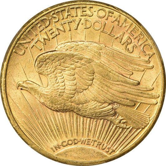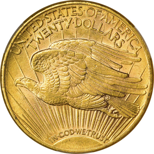 1908 $20 NO MOTTO MS63 PCGS CAC