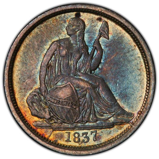 1837 H10C SEATED NO STARS SM DT MS65 OH NGC CAC