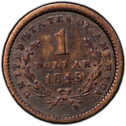 1849 G$1 OPEN WREATH VF35 PCGS CAC