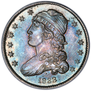 Introduced by John Reich, the Capped Bust design reflected neoclassical aesthetics, with a left-facing Liberty adorned in a Phrygian cap. These coins are known for their detailed artistry and historical significance.