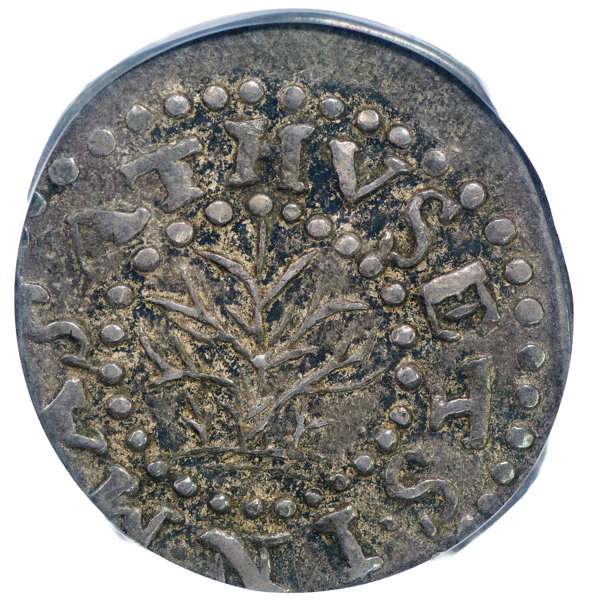 1652 Pine Tree Threepence – Noe-34, Salmon 1-A – XF45 PCGS, CAC Massachusetts Bay Colony Silver Coinage represents one of the most iconic issues of early American colonial coinage. Whilst with patience finding a 1652 Threepence can be acquired, finding a problem-free example with CAC approval is near impossible given only 3 are noted finer in AU55. The example offered here is a particularly handsome and original survivor with richly toned, undisturbed surfaces and pleasing overall eye appeal. The obverse exhibits a dominant palette of antique silver and pewter-gray, accented by soft golden-brown and pale copper hues that gently sweep across the fields and design elements. Deeper gunmetal shades gather in the recesses around the tree’s trunk and branches, providing depth and definition, while subtle violet and rose iridescence emerges when the coin is viewed under angled light — a sophisticated visual nuance rarely seen on circulated Pine Tree silver. The texture is softly matte with evenly worn high points, reflecting honest circulation, and the micro-granular character of the fields preserves the crude yet historically evocative fabric of 17th-century hammered coinage. A few shallow planchet striations and mint-made irregularities are present, as expected from this hand-struck issue, further testifying to its authenticity and period manufacture. The planchet is slightly undersized relative to the dies, resulting in portions of the peripheral lettering extending beyond the flan — a characteristic trait of Noe-34. Die alignment is slightly off, with the obverse shifted upward toward 11 o’clock while the reverse remains more centrally struck. These features are consistent with other known examples and contribute to the distinctive colonial character of this piece. The absence of “IN” on the obverse further identifies this as the classic Noe-34 die pairing. Die orientation is 345°, and this exact coin is listed on page 36 of the 2023 Guide Book. Auction records confirm the desirability of this piece: the same coin realized $4,320 (Heritage, 08/28/2022) and $5,463 (Heritage, 02/03/2011). Today this coin has a PCGS Price Guide at $5,500 with a non-CAC XF45 selling since then for $5,040 01/23 HA.