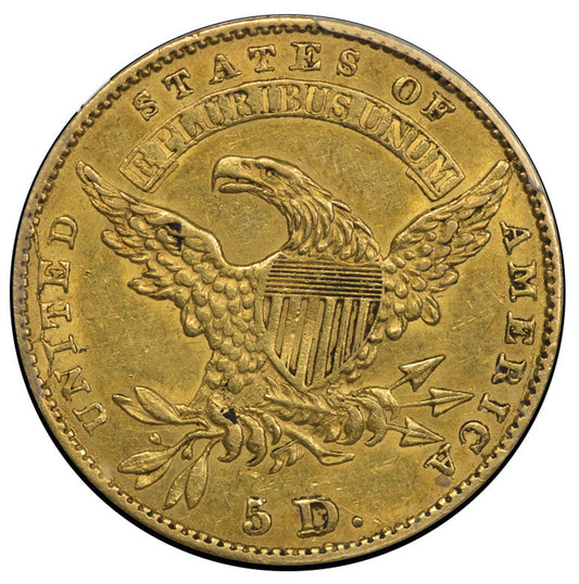 1806 $5 KNOBBED 7X6 STARS AU58 PCGS CAC